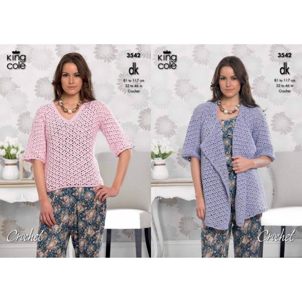 KC3542 Crocheted Cardigan and Top for Women in King Cole Cottonsoft DK