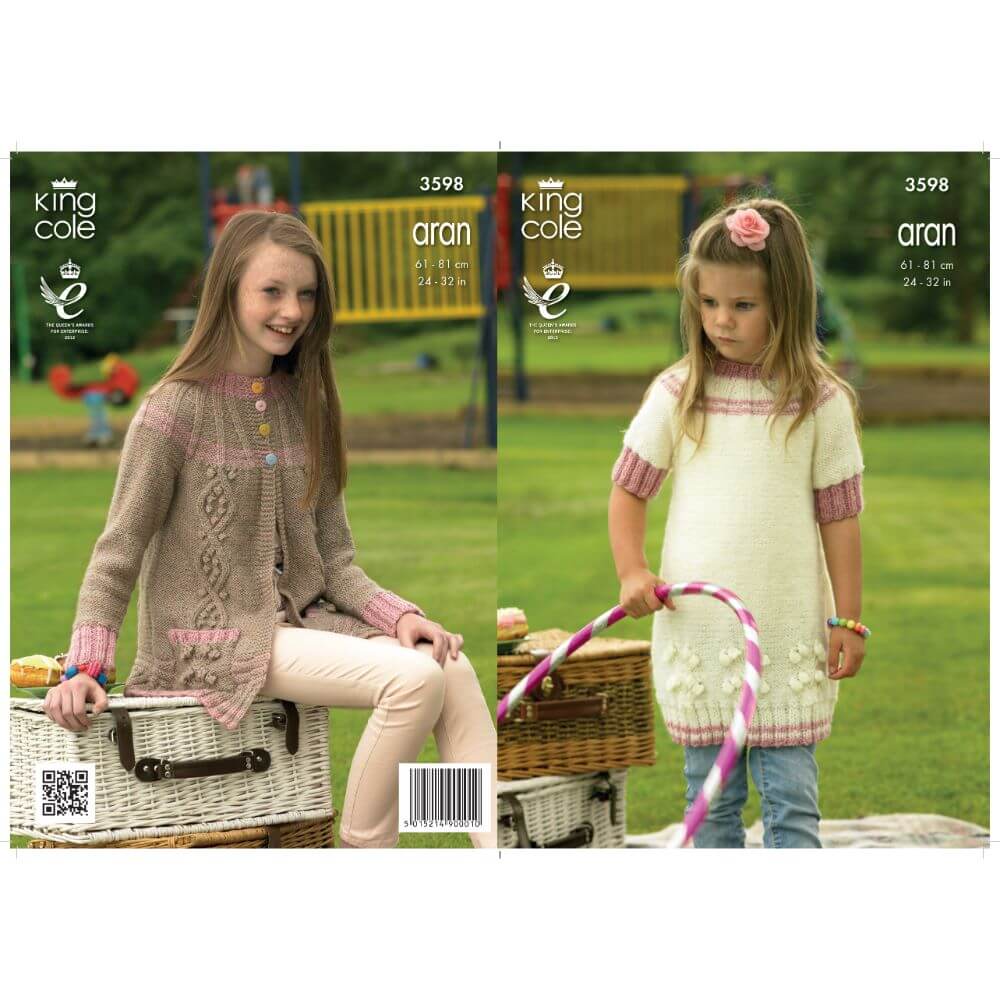 KC3598 Dress and Cardigan for Girls in King Cole Big Value Aran