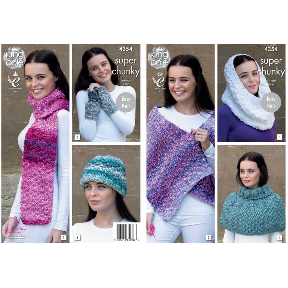 KC4354 Women Scarf, Shoulder Wrap, Snood, Polo Shoulder Cover, Hat and Wrist Warmers Knitted with Big Value Super Chunky Tints