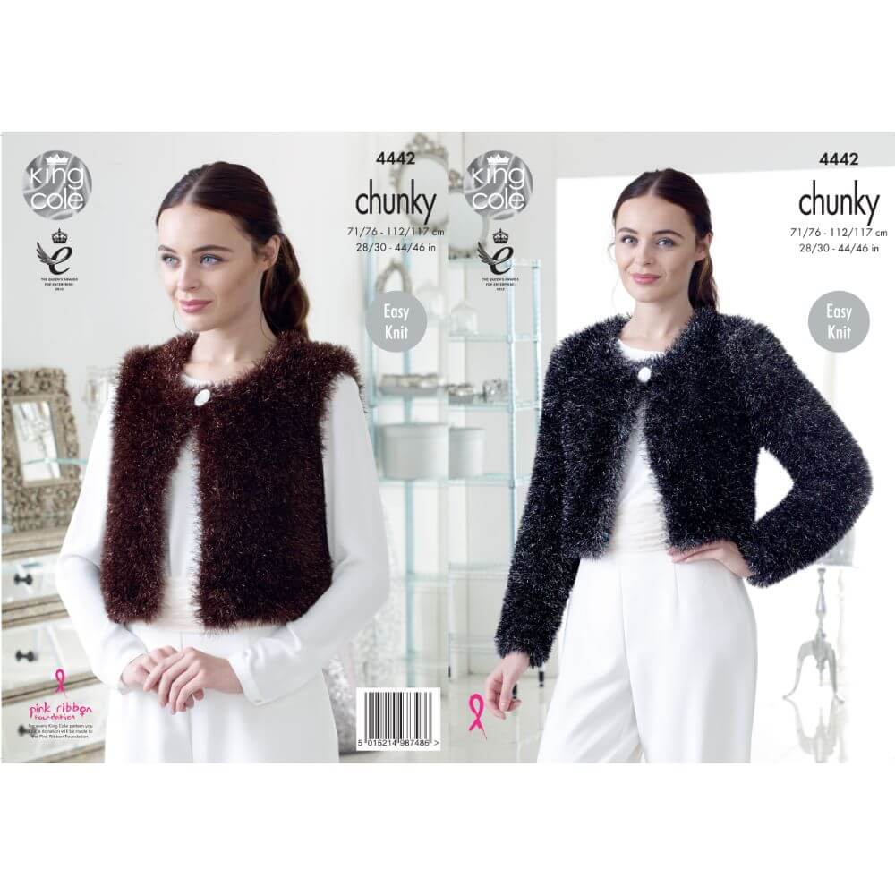 KC4442 Women V & Round Neck Cardigans Knitted with Tinsel Chunky