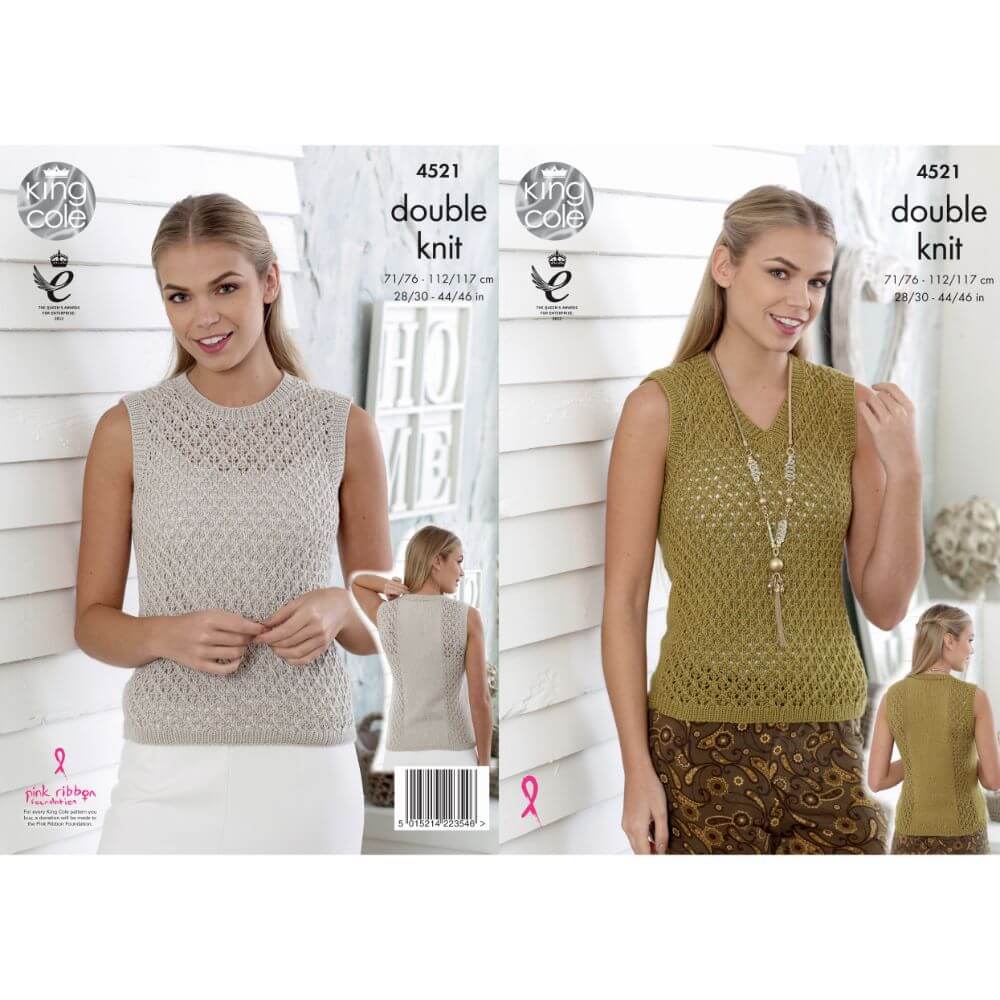 KC4521 Women Round and V-neck Lace Tops Knitted with Smooth DK
