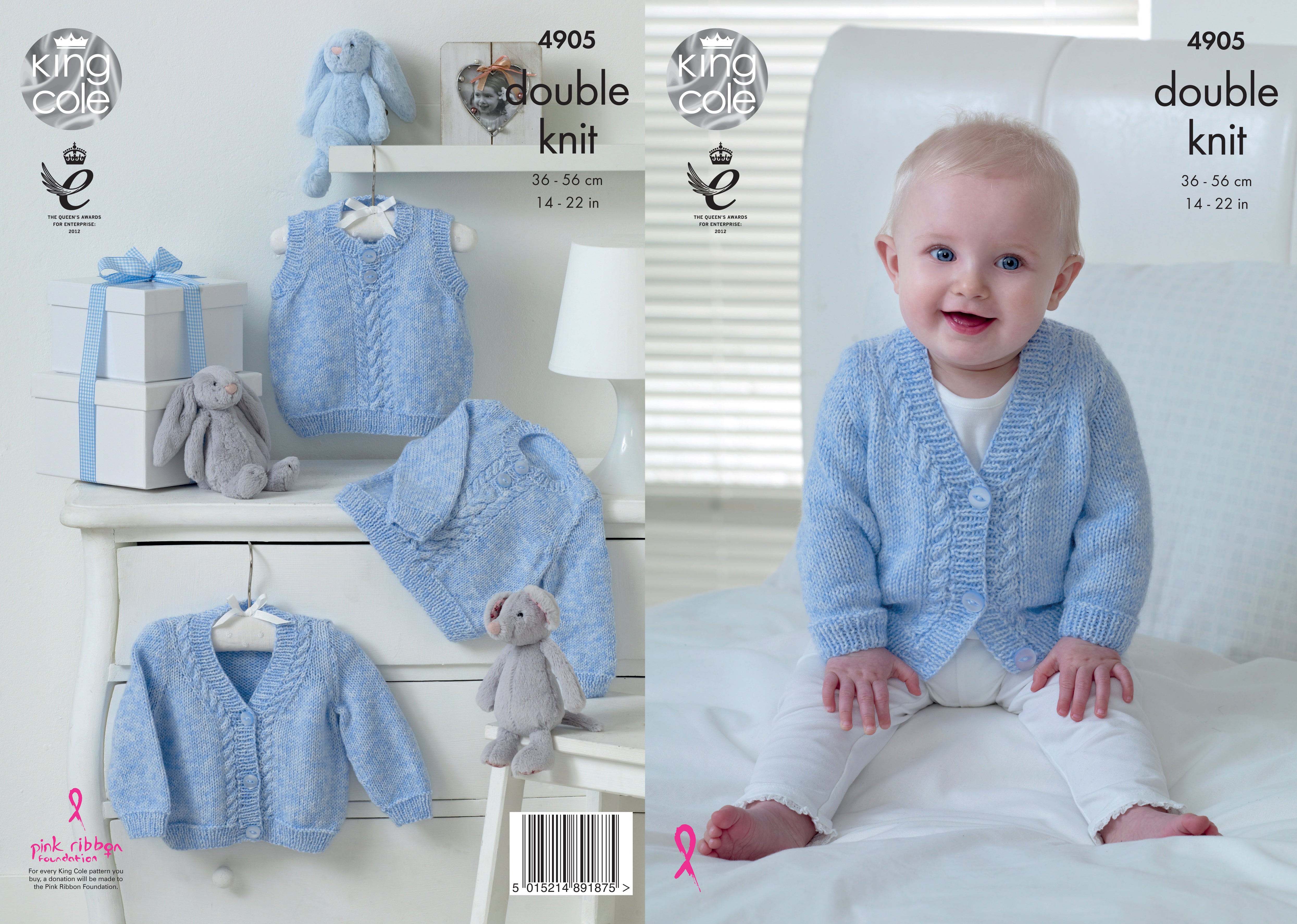 KC4905 Baby Sweater, Slipover and Cardigan in King Cole Baby Pure DK