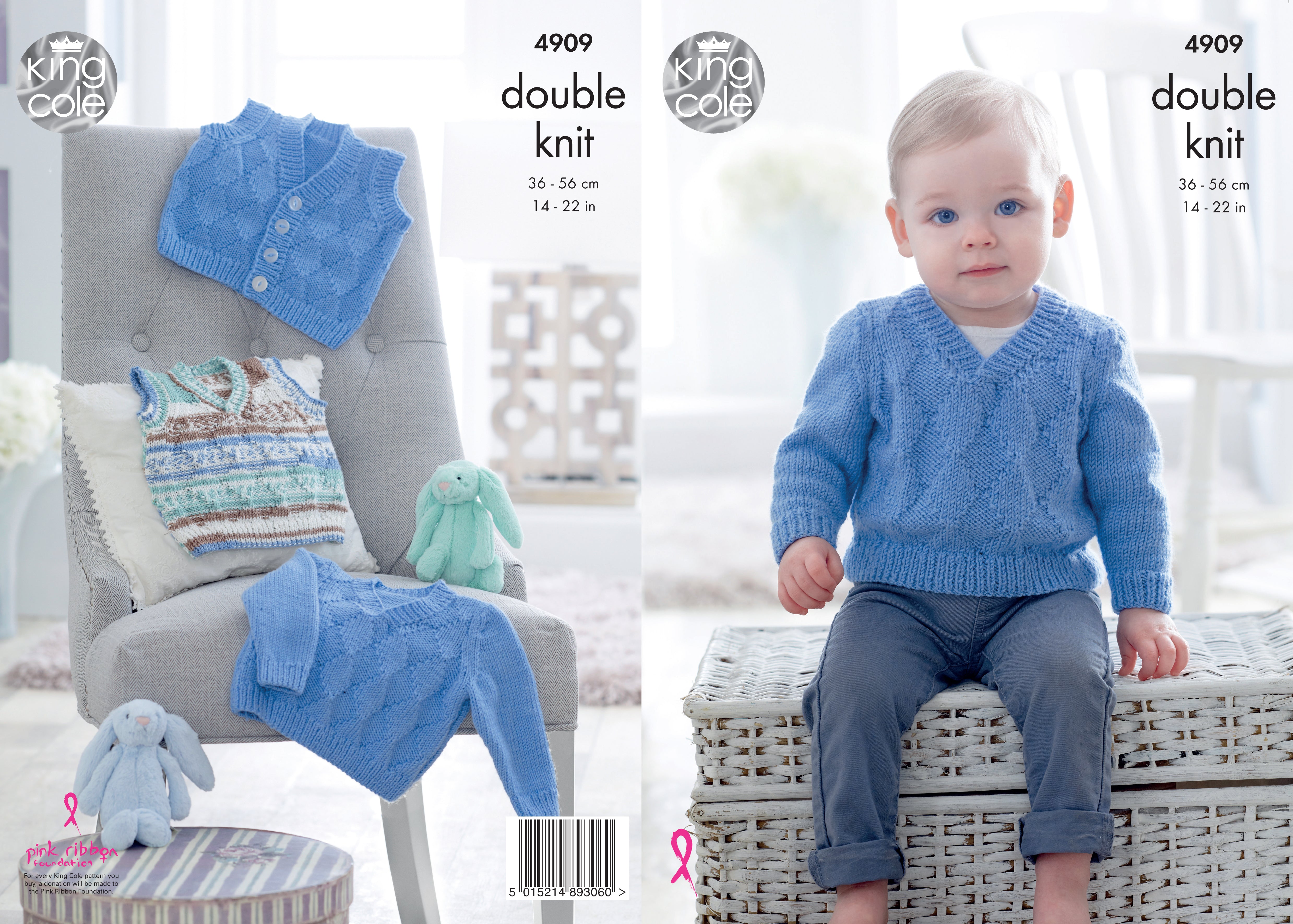 KC4909 Slipover, Sweater and Waistcoat for Babies in King Cole Cherish DK and Cherished DK