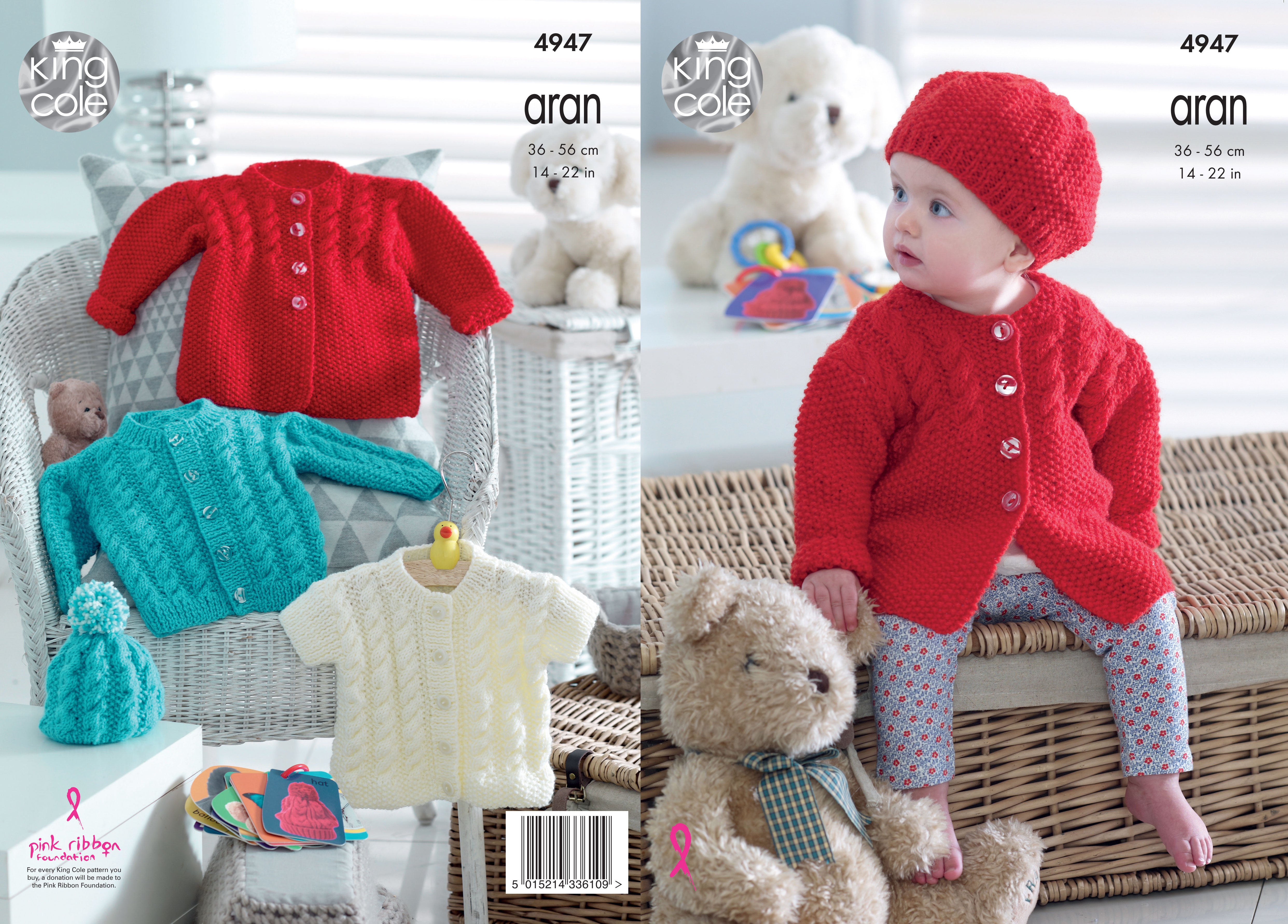 KC4947 Jackets, Hats and Cardigans for Babies in King Cole Comfort Aran