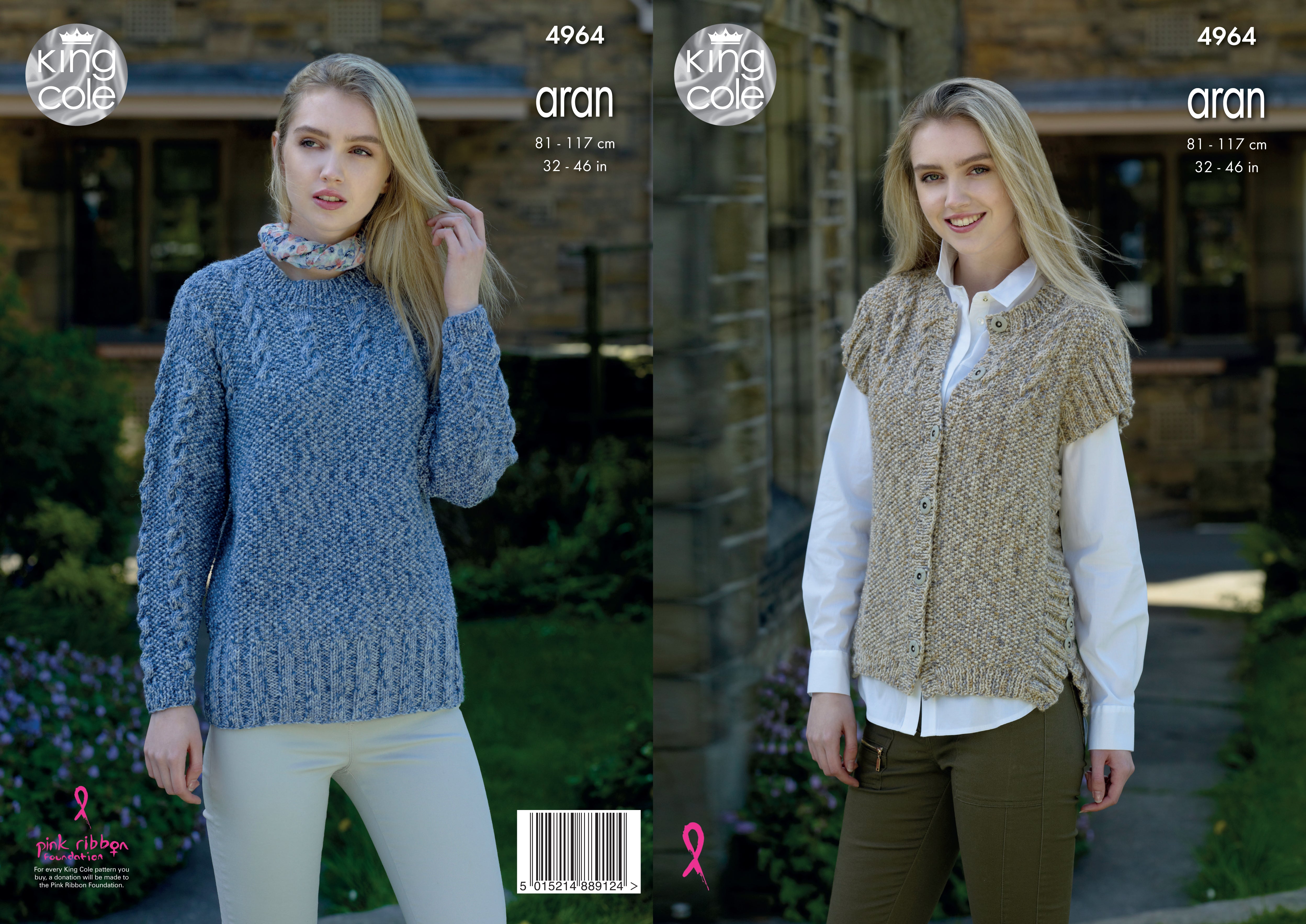 KC4964 Sweater and Gilet for Ladies in King Cole Fashion Aran