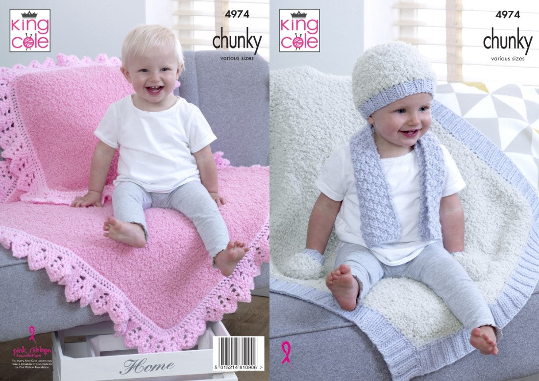 KC4974 Blankets, Cushion, Hat, Scarf and Mittens in King Cole Cuddles Chunky