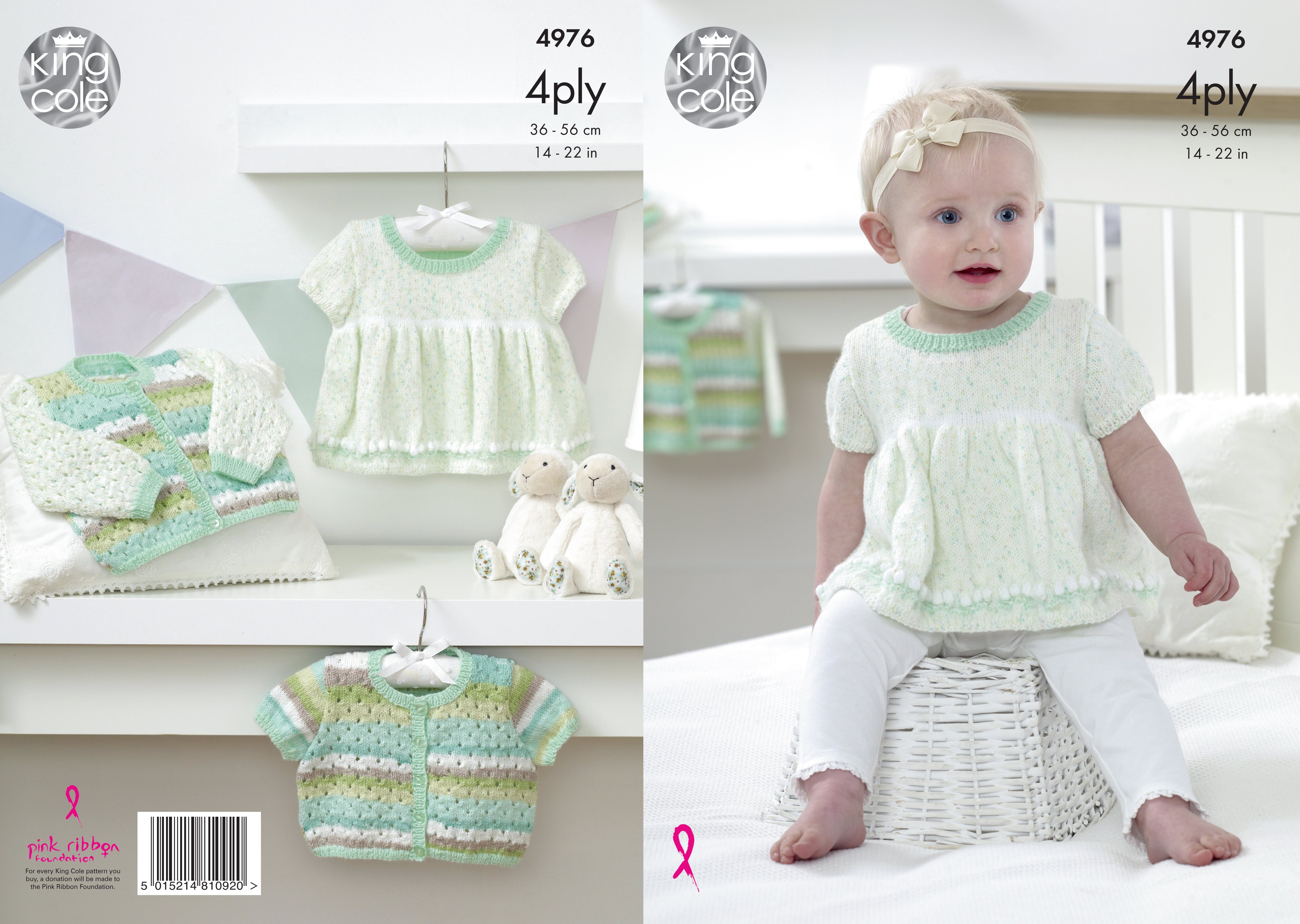 KC4976 Dress and Cardigan for Babies in King Cole Big Value Baby 4ply, Spot and Print