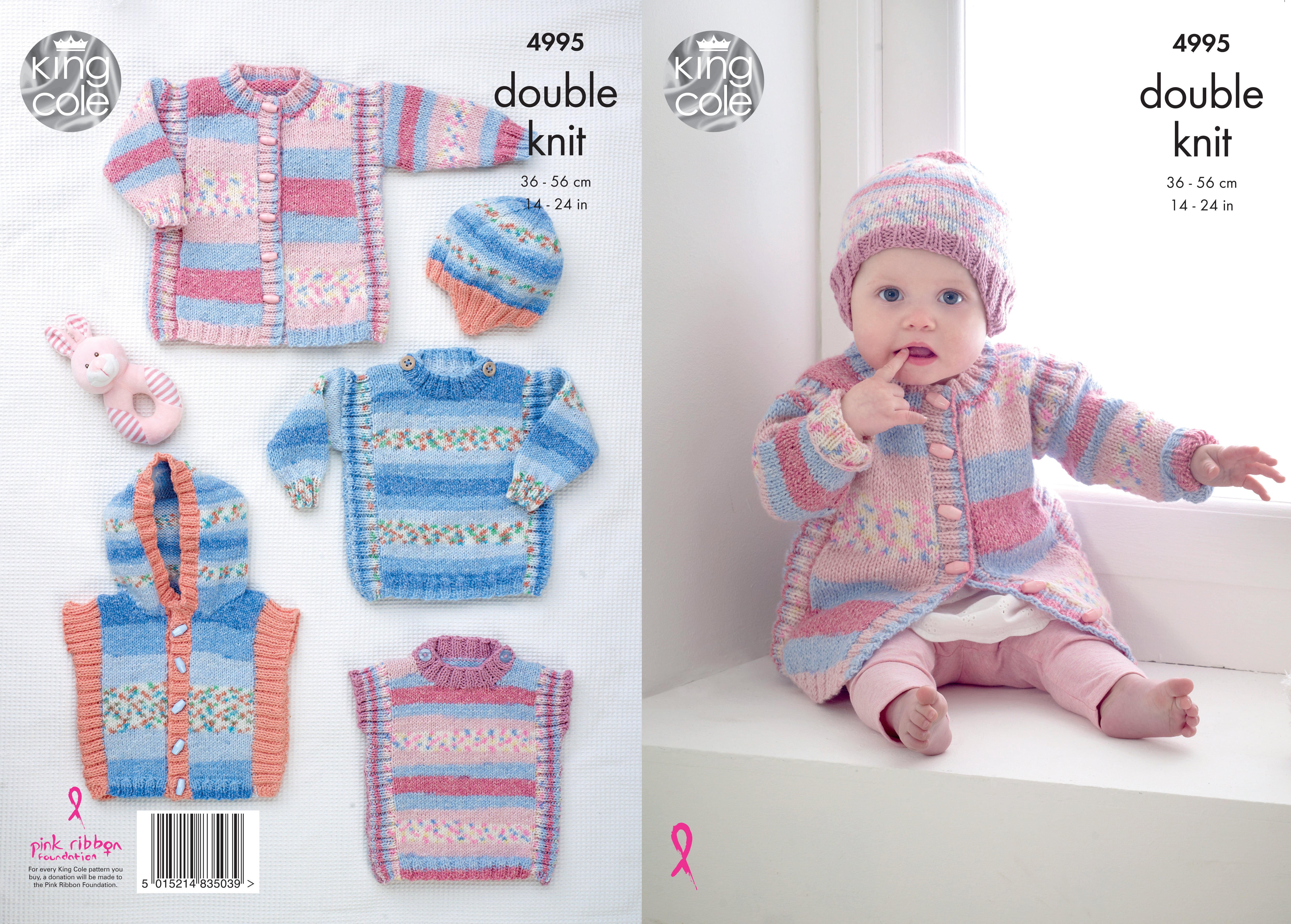 KC4995 Coat, Hat, Sweater, Tabard and Gilet for Babies in Various King Cole DK
