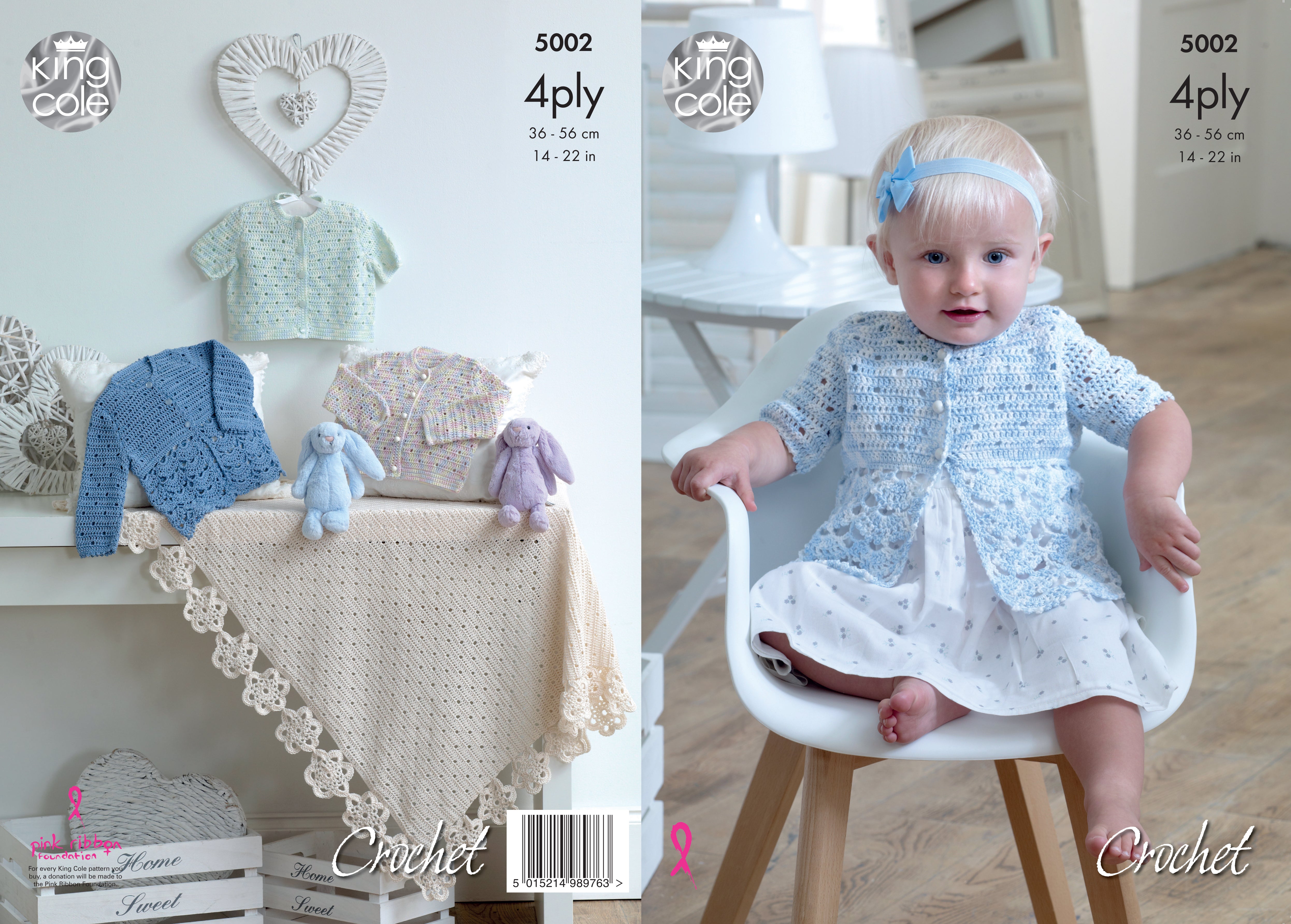 KC5002 Crochet Cardigans and Blanket for Babies in King Cole Giza Cotton 4ply