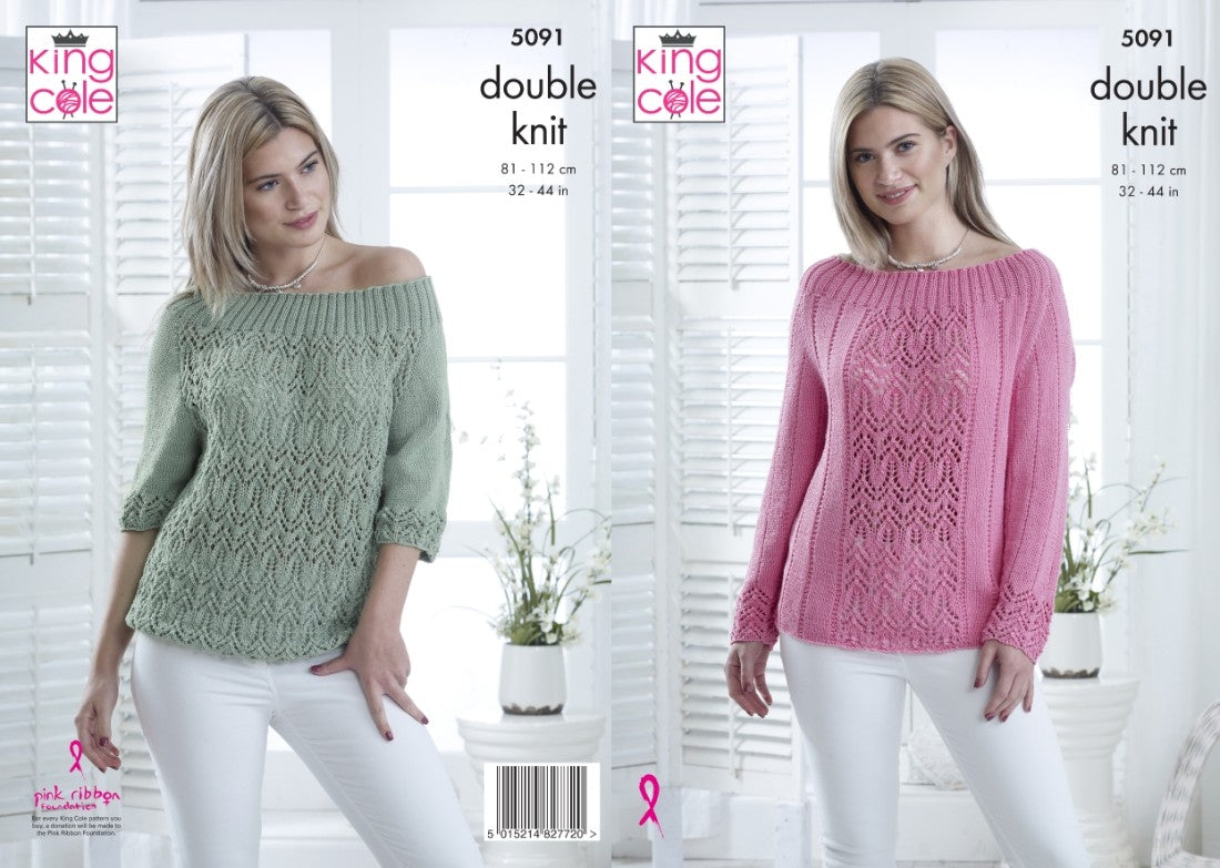 KC5091 Sweater and Top for Women in King Cole Bamboo Cotton DK