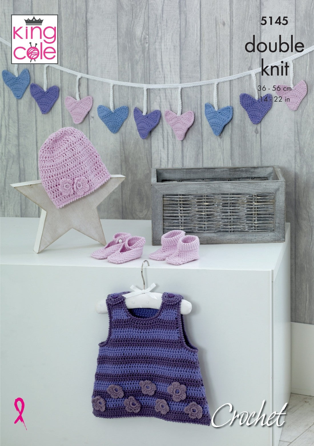 KC5145 Babies Pinafore Dress, Bunting, Hat, Shoes & Booties in Cottonsoft DK