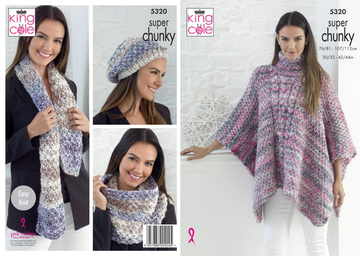 KC5320 Ladies Tabard, Hat, Scarf and Cowl in King Cole Big Value Super Chunky Tints