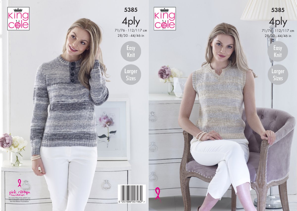 KC5385 Ladies Sweater and Slipover in King Cole Drifter 4Ply