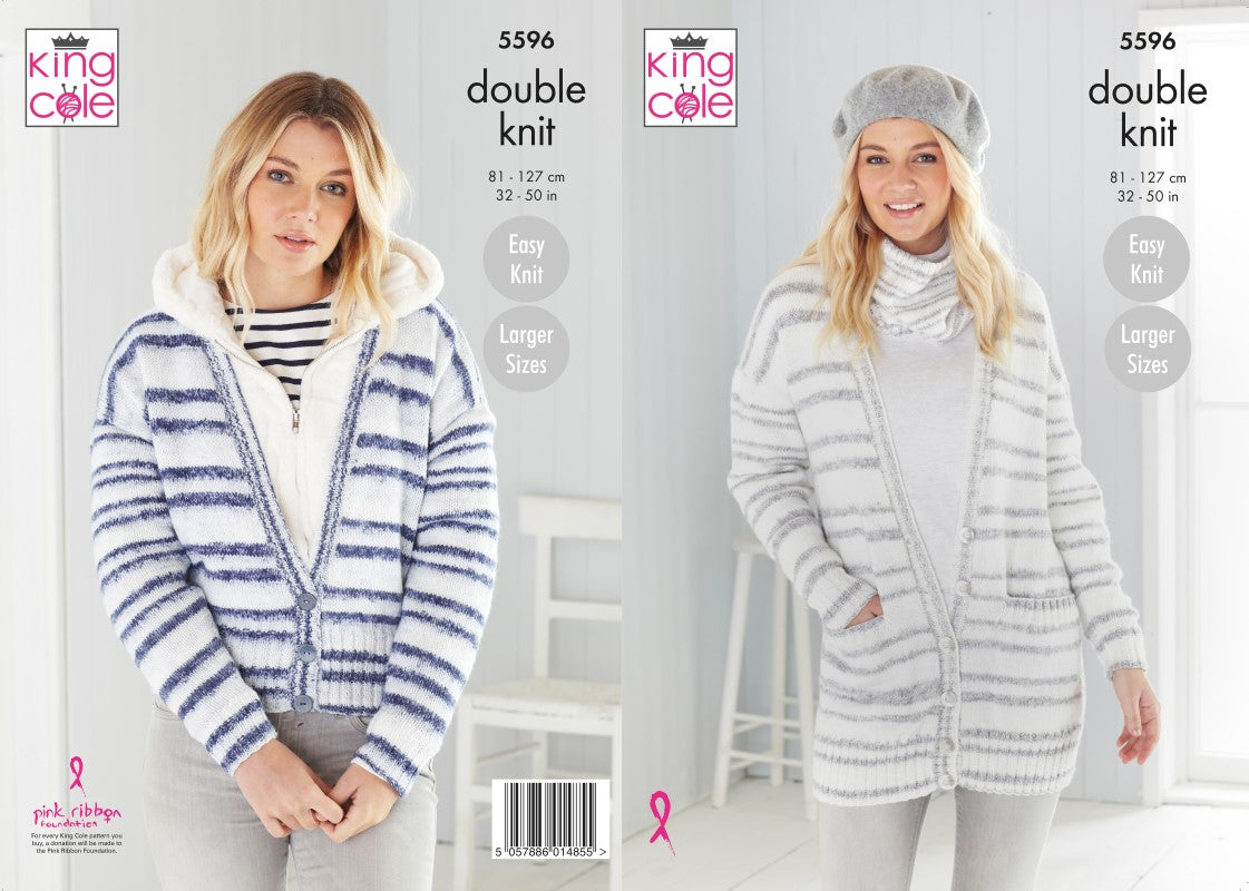 KC5596 Women's Cardigans & Snood in King Cole Stripe DK