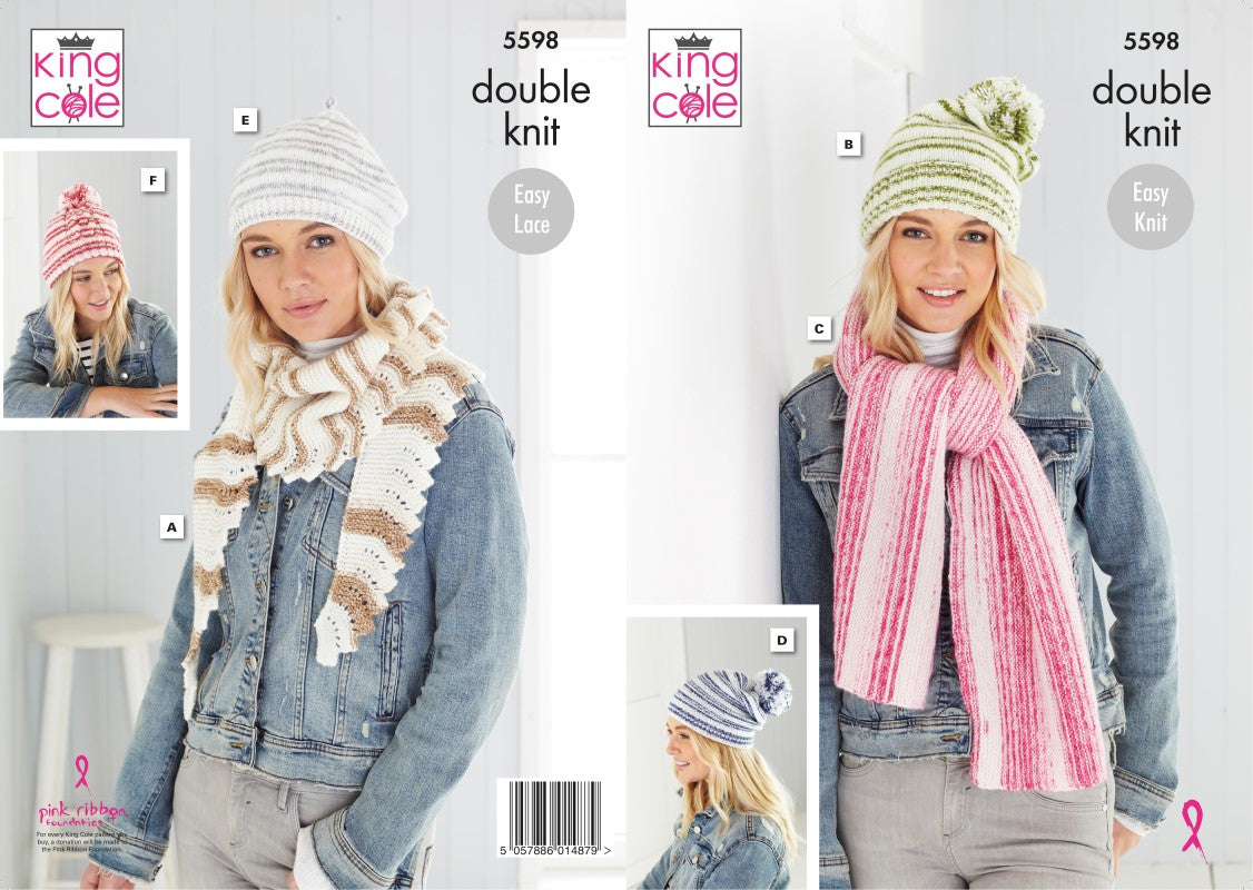 KC5598 Women's Hats, Beret & Scarves in King Cole Stripe DK
