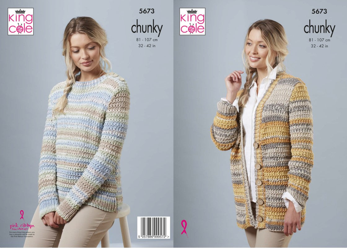 KC5673 Women's Sweater & Cardigan in King Cole Drifter Chunky