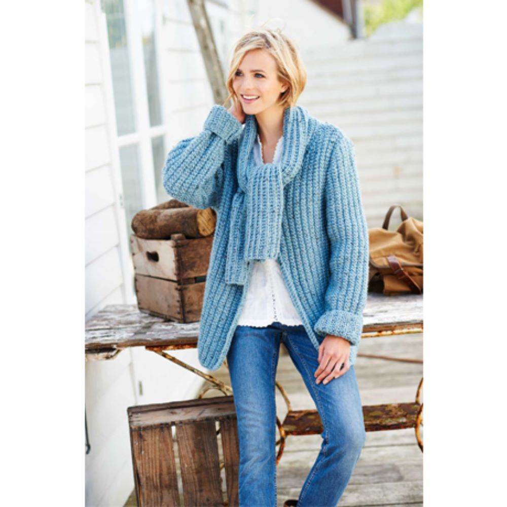 St9205 Ladies Scarf Neck Jacket Alpaca Tweed Chunky
