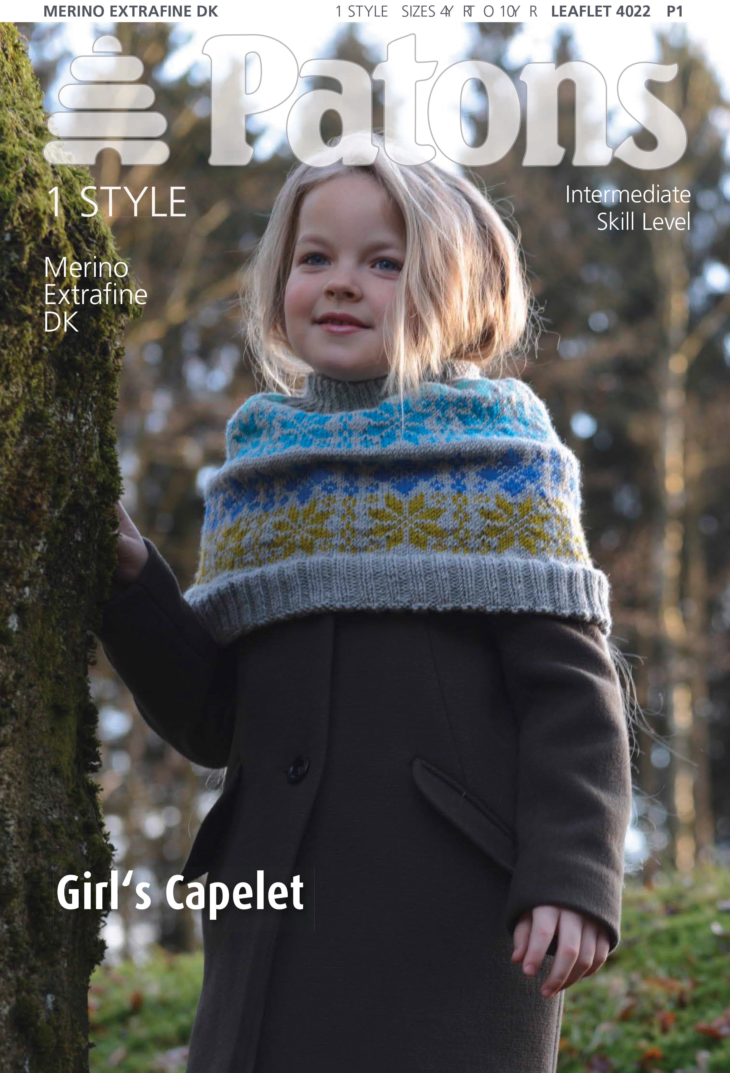 Patons 4022 Girls Snowflake Fairisle Capelet using Patons Merino Extrafine DK