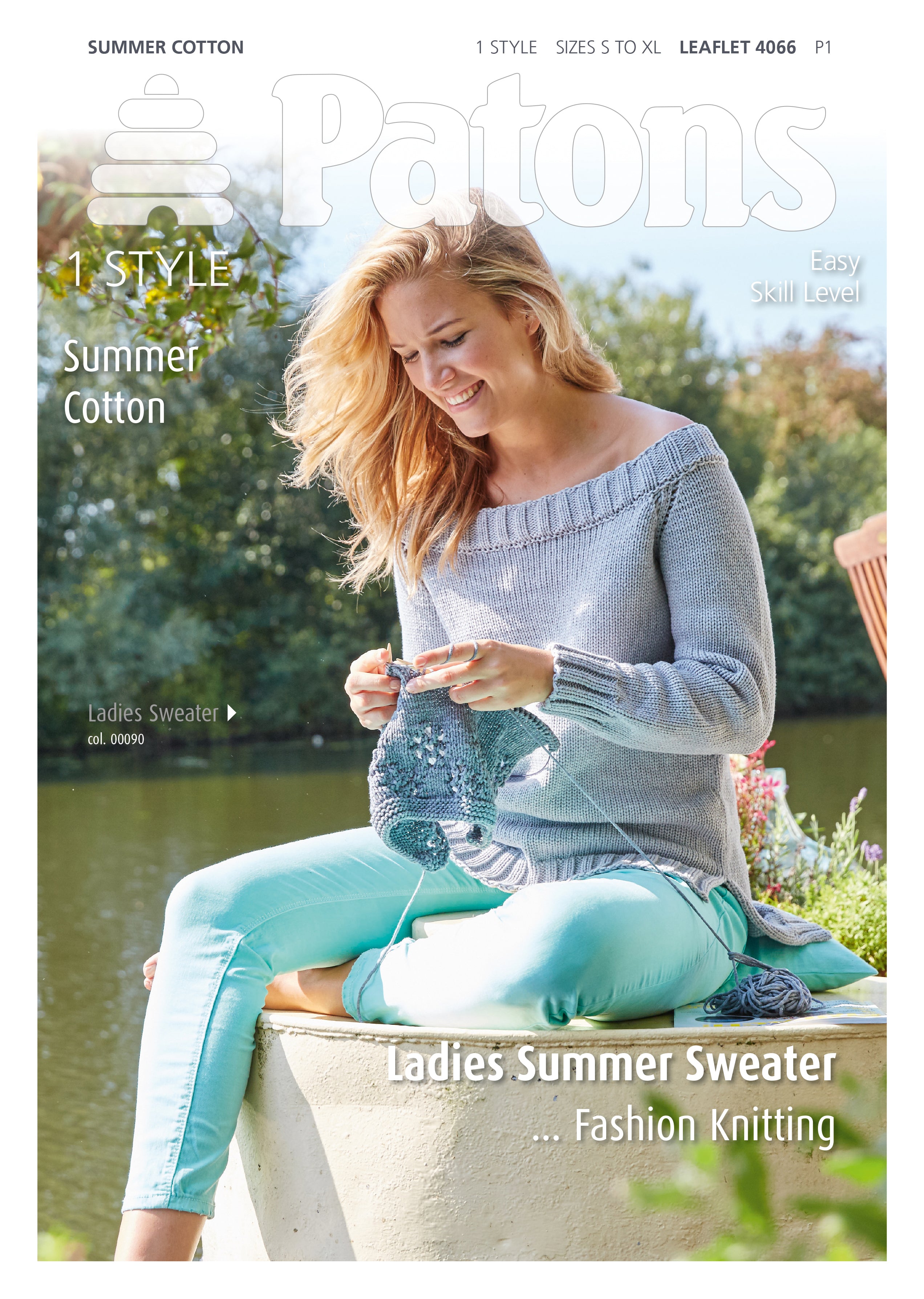 Patons 4066 Ladies Summer Sweater knitted using Patons Summer Cotton