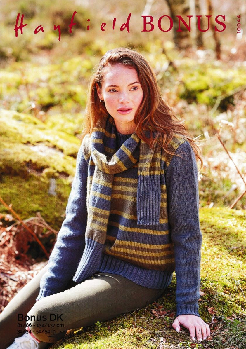 S10044 Ladies Stripe Sweater and Scarf in Hayfield Bonus DK