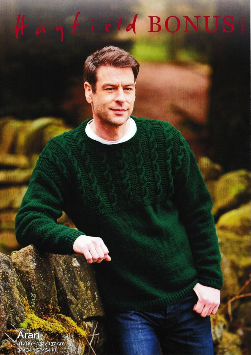 S10077 Men's Cable Sweater in Hayfield Bonus Aran