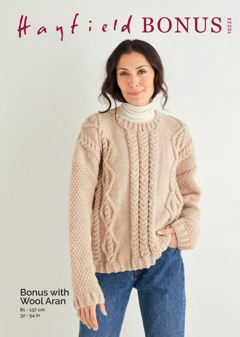 S10223 Women's Diamond And Arrowhead Textured Sweater in Hayfield Bonus Aran With Wool