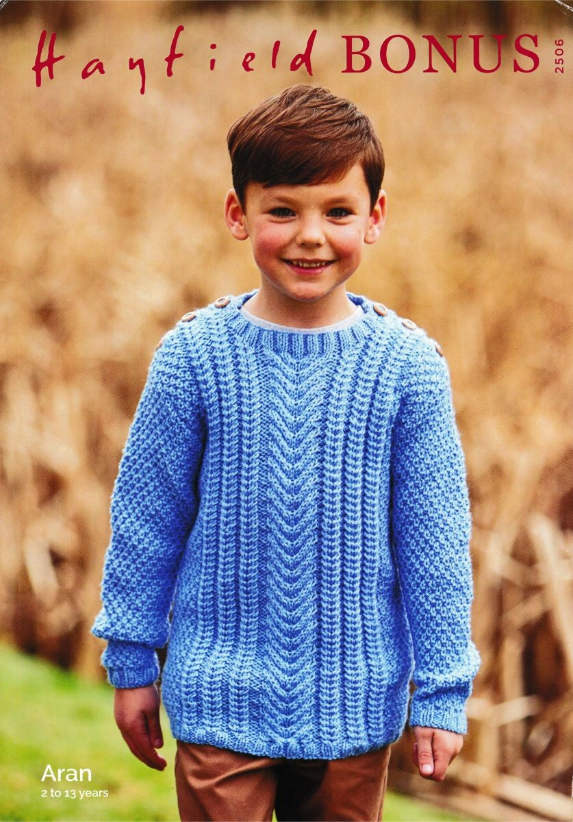 S2506 Boy's Aran Sweater in Hayfield Bonus Aran