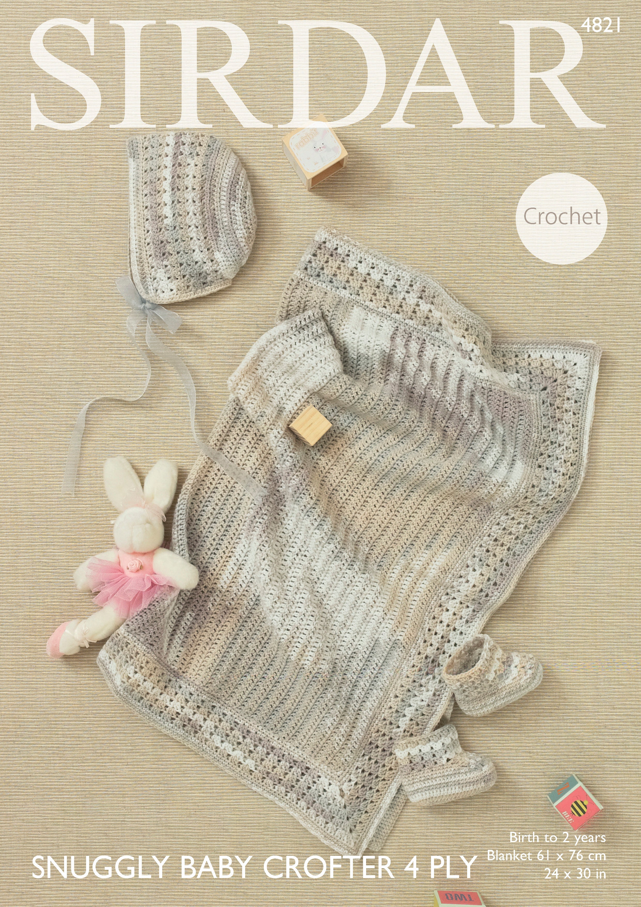 S4821 Blanket, Hat and Bootees for Sirdar Snuggly Baby Crofter 4ply
