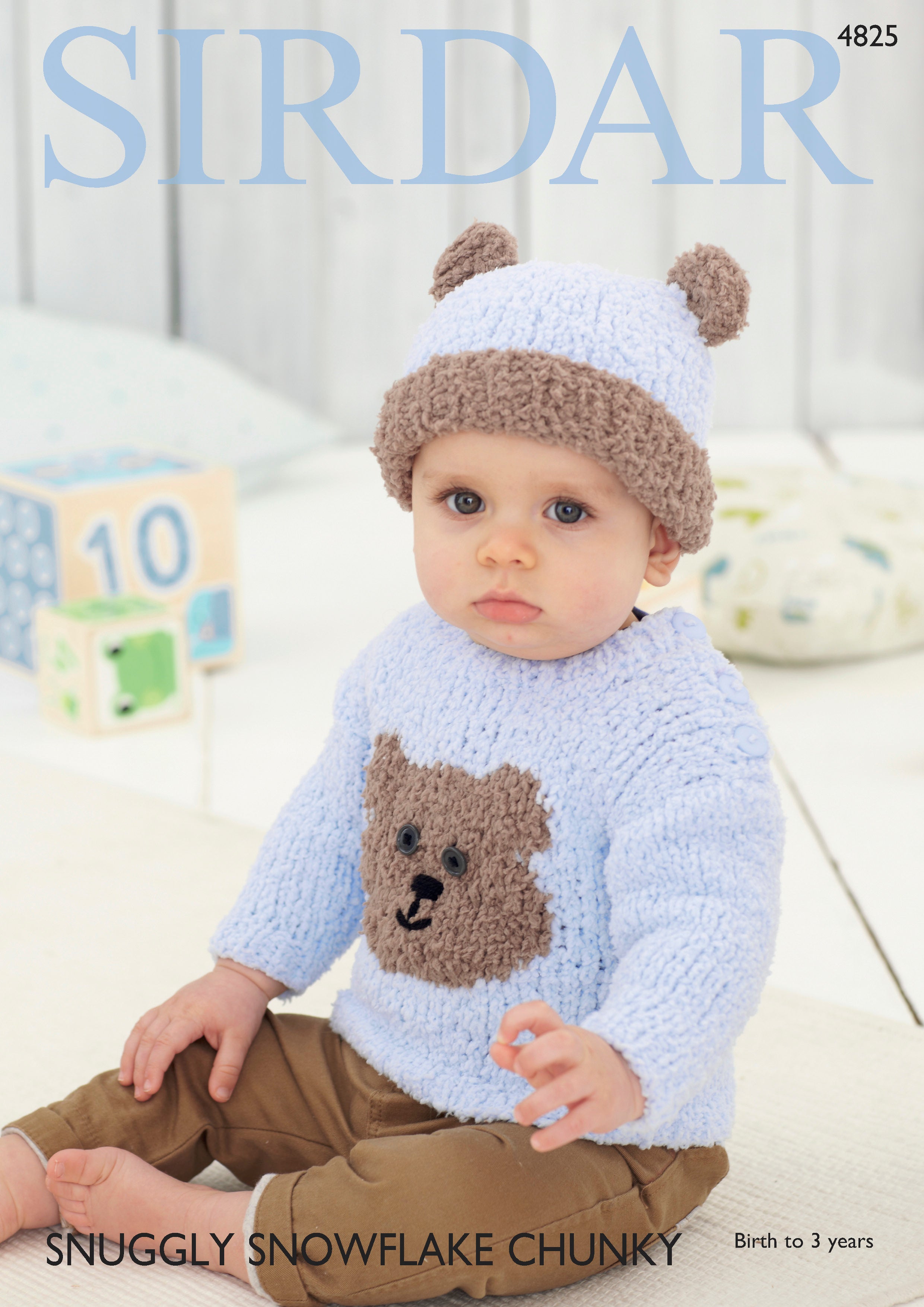 S4825 Bear Hat and Jumper for Babies in Sirdar Snuggly Snowflake Chunky