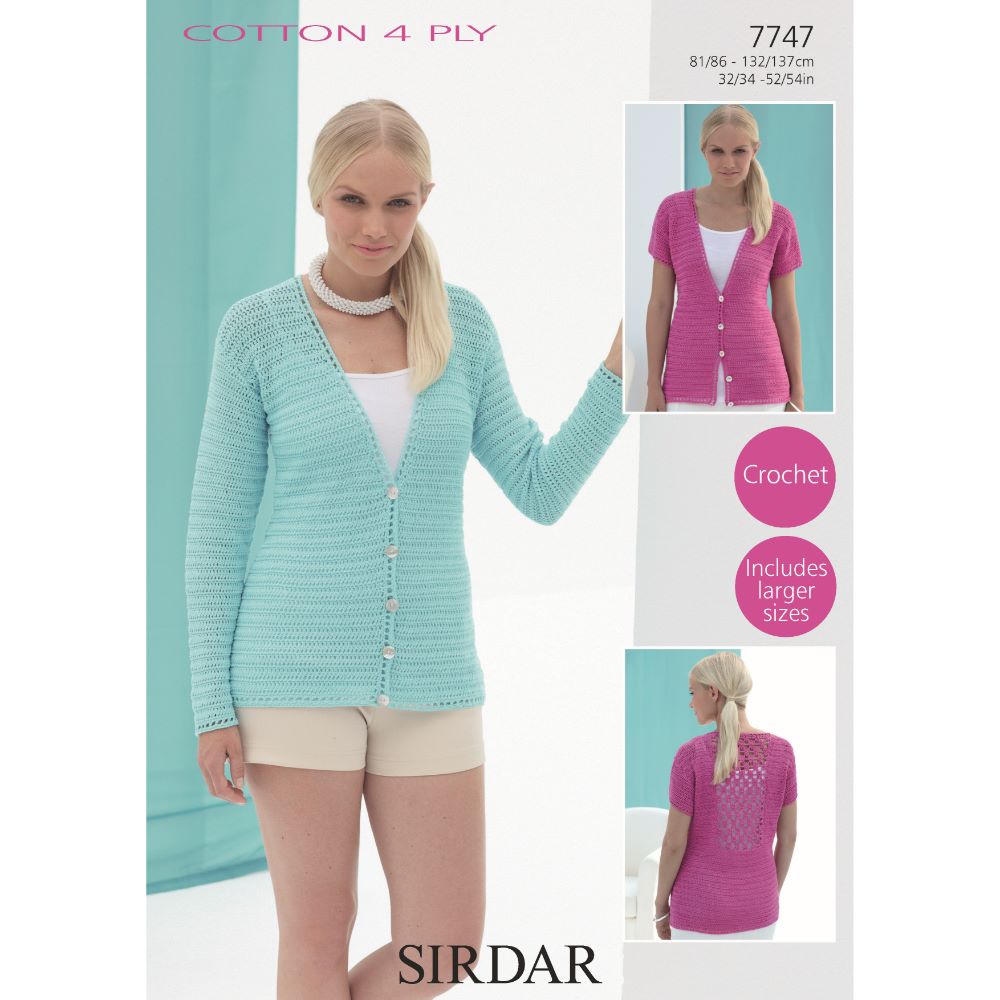 S7747 Crochet Cardigans for Women in Sirdar Cotton 4 Ply