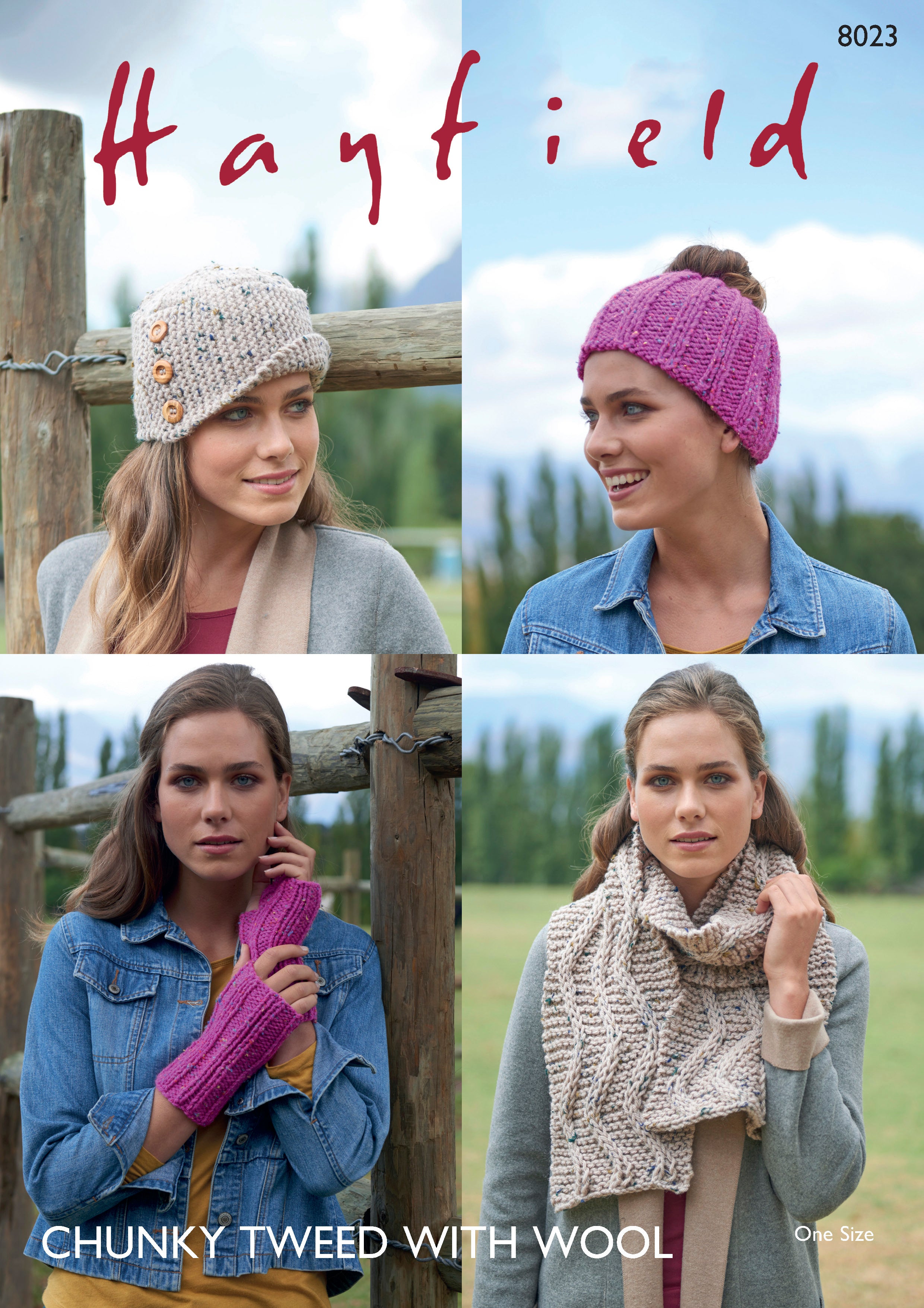 S8023 Hats, Scarf and Mittens for Women in Hayfield Chunky Tweed with Wool