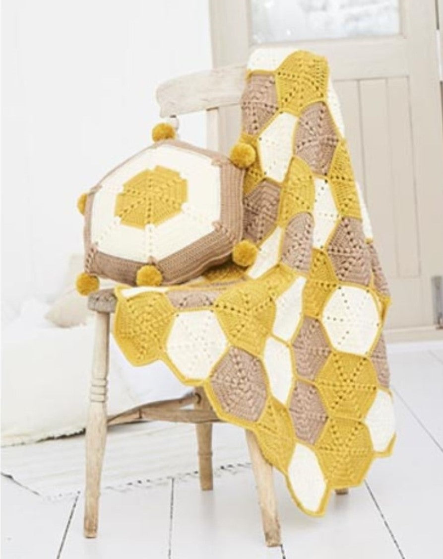 St9614 Crochet Honeycomb Blanket & Cushion in Stylecraft Bellissima DK